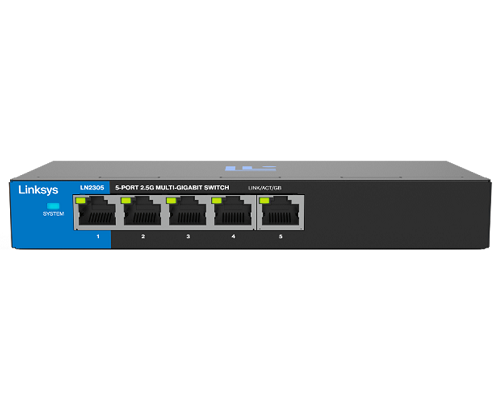 The Linksys LN2305-KE boosts your network speed. Plug-and-play, reliable, and ready to handle your growing demands, each multi-gigabit port delivers up to 5 Gbps of interruption-free network speed.